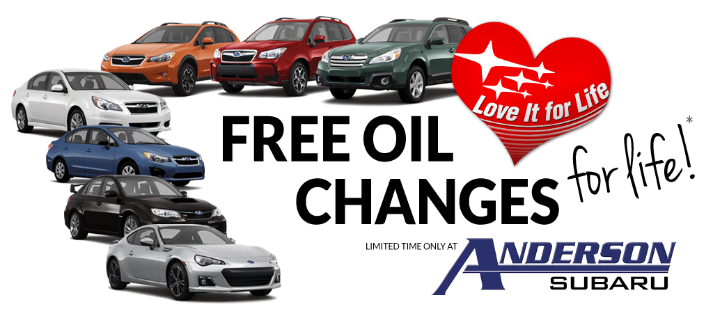 How would you like to know you can just pull up to the Anderson Subaru Service Center and get your oil changed for FREE for as long as you own your new Subaru?